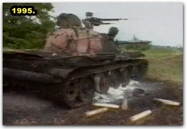 Tenk T-55 uništen na relaciji Crni Lug - Grkovci, blizu B. Grahova, juna 1995.god.
